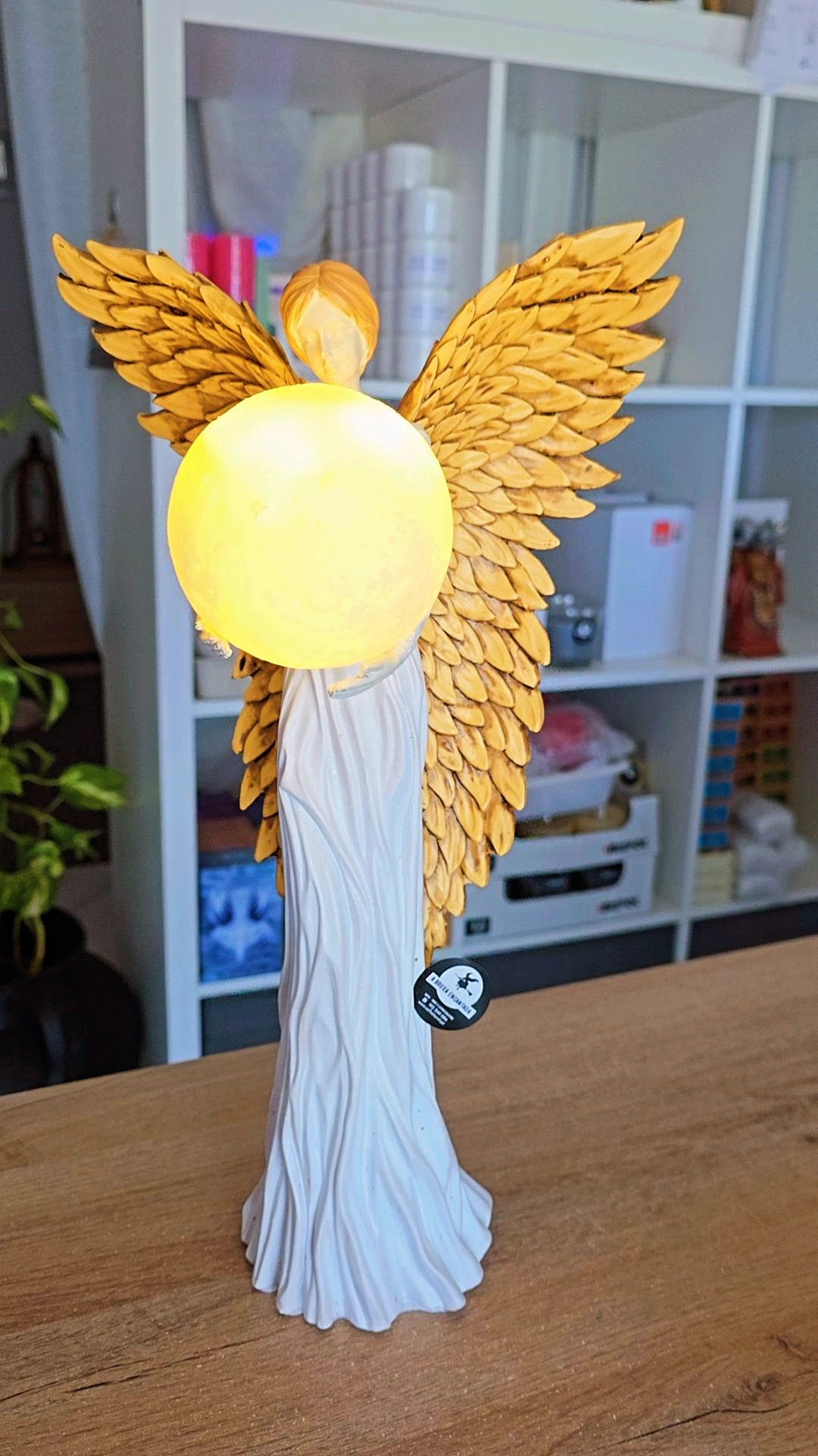 Este Anjo da Guarda, envolto numa aura de Luz Protetora, segura delicadamente uma esfera brilhante (led) – símbolo da sabedoria, da intuição e da proteção divina.