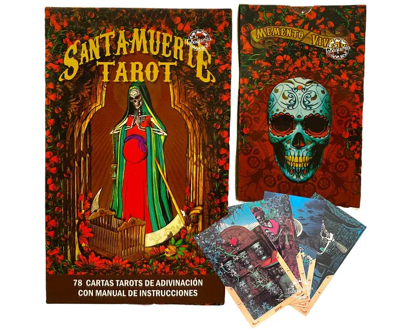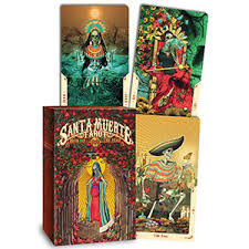 Baralho de cartas de tarot Santa Muerte com ilustrações coloridas e caixa decorativa